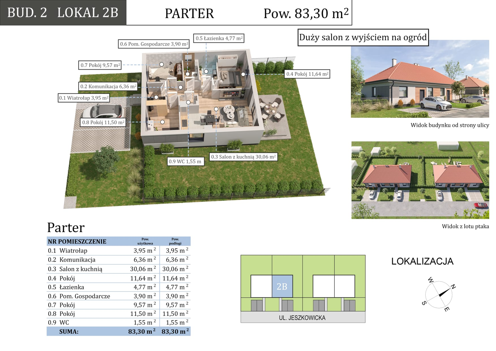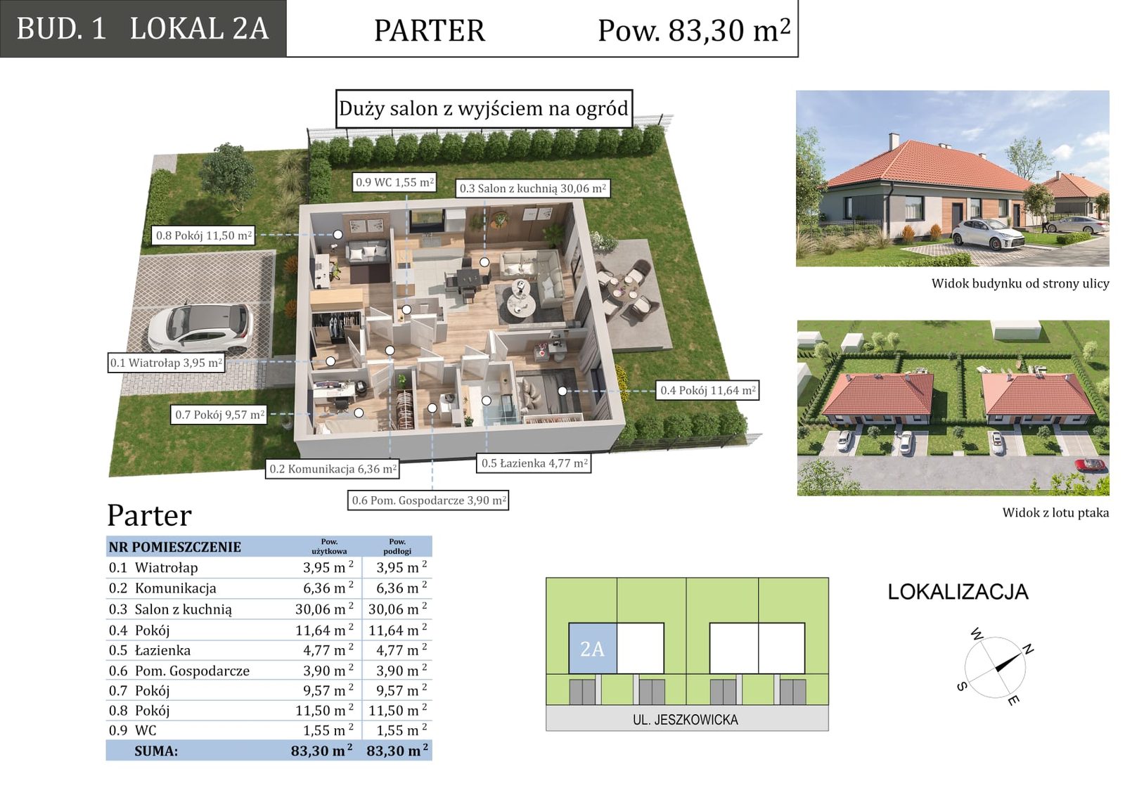 Inwestycja w Nadolicach Wielkich przy ul. Jeszkowickiej została w całości zrealizowana i wszystkie budynki zostały sprzedane. Projekt spotkał się z dużym zainteresowaniem klientów, co potwierdza atrakcyjność lokalizacji, wysoki standard wykonania oraz przemyślaną koncepcję inwestycji.