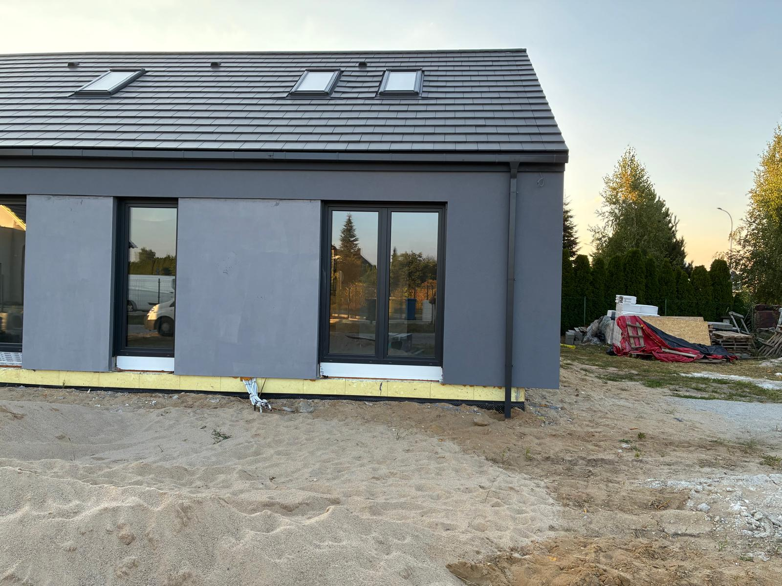 Budynek został zrealizowany w oparciu o nowoczesny projekt architektoniczny, z naciskiem na jakość wykonania, energooszczędność oraz trwałość zastosowanych rozwiązań. Duże przeszklenia, w tym charakterystyczne efektowne okno, zapewniają bardzo dobre doświetlenie wnętrz i podkreślają nowoczesny charakter domu.